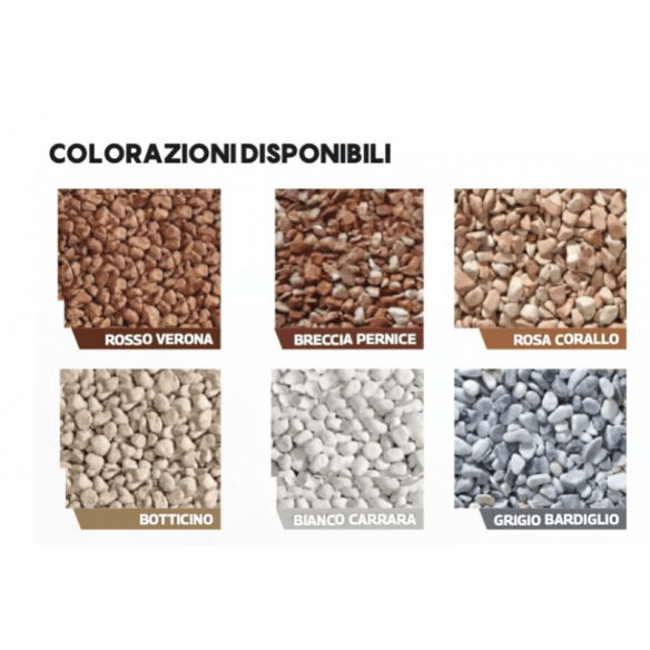 Das Produkt kann in öffentlichen Bereichen, auf Radwegen, Plätzen, Balkonen, Terrassen, an Schwimmbadrändern, in Gemeinschaftsräumen usw. eingesetzt werden. Es ist in einer breiten Farbpalette mit einer Korngröße von Ø 1-4 mm erhältlich.