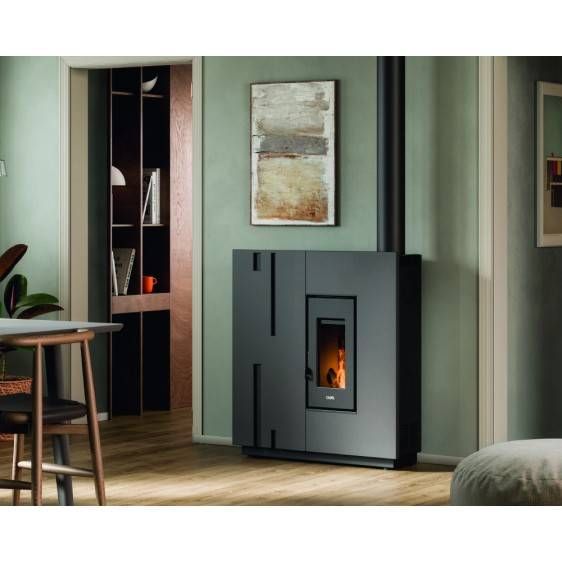 Dank seines großen 32-kg-Tanks kann dieser 6,9-kW-Ofen mit einer einzigen Füllung mehr als zwei Säcke Pellets aufnehmen. Dies garantiert 50 Stunden Verbrennung oder 3 bis 6 Tage (je nach Nutzung), ohne dass Pellets nachgefüllt werden müssen. Der Baggy 7 ist nur 28 cm dick und verfügt über ein originelles ästhetisches Detail mit Kanälen, die abwechselnd Voll- und Hohlräume erzeugen und dem Design Bewegung und Dreidimensionalität verleihen. Dank integrierter Bluetooth- und WLAN-Konnektivität kann er über eine App auf Ihrem Smartphone fernprogrammiert und gesteuert werden . Er ist außerdem 5-Sterne-zertifiziert (DM 186), was hohe Leistung und niedrige Emissionen garantiert, und ist für die Kostenerstattung des Conto Termico qualifiziert.