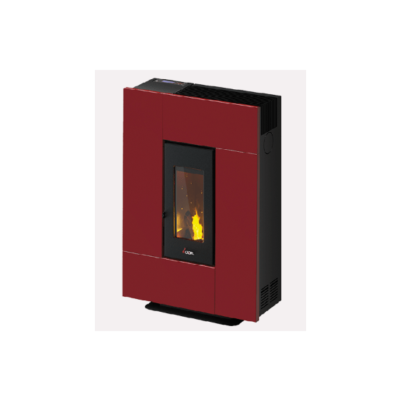 Der Pelletofen, der einrichtet. Sein elegantes und modernes Design macht ihn dank einer Tiefe von nur 27,5 cm besonders für kleine Räume geeignet. Ebenfalls erhältlich ist ein praktisches Set zur Wandmontage.