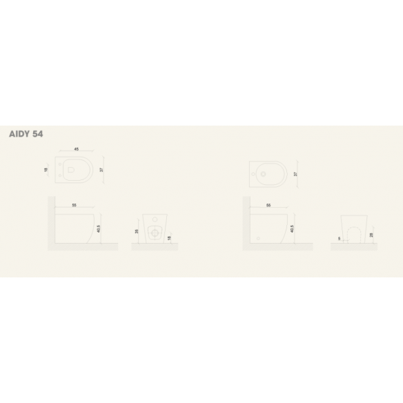 Coppia sanitari filo muro AIDY ad installazione a terra