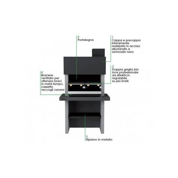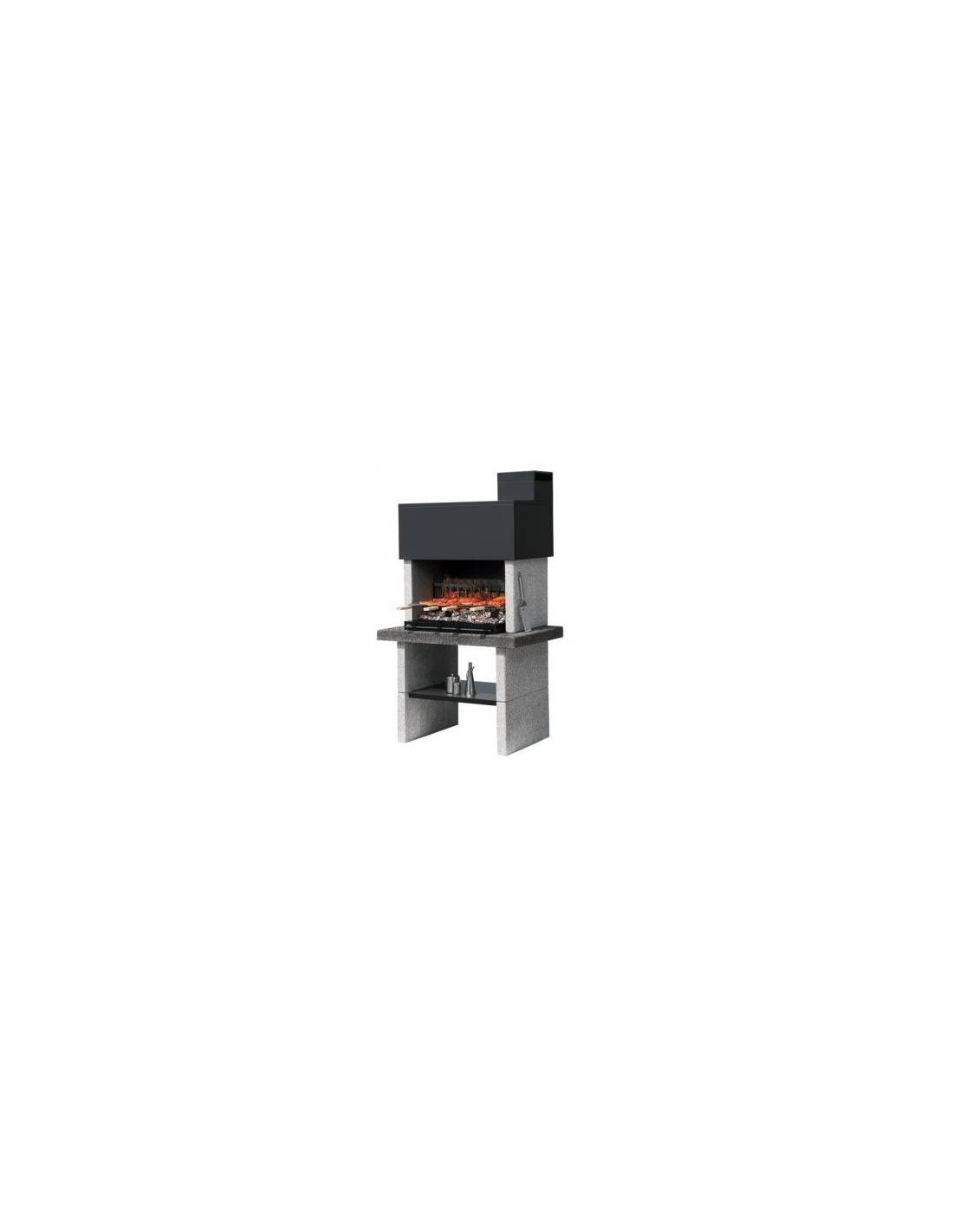 Barbecue in granules of tumbled marble, stainless steel hood painted black, tops finish "Crystal".