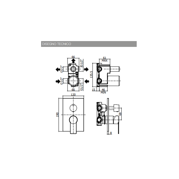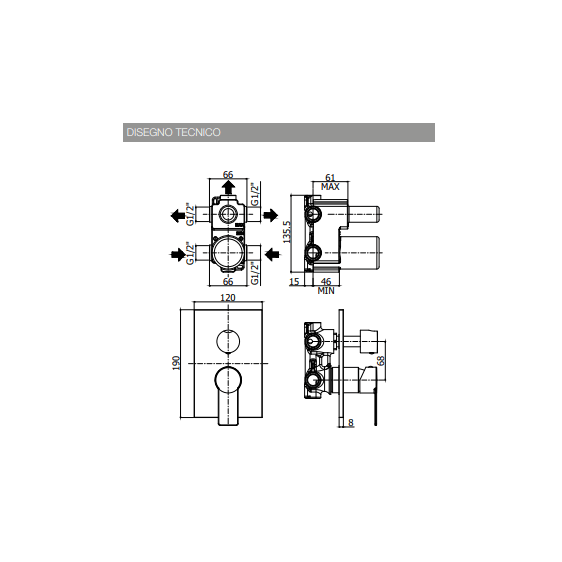 Miscelatore incasso doccia (3 uscite) con cartuccia deviatore TANGO TA019CR Paffoni