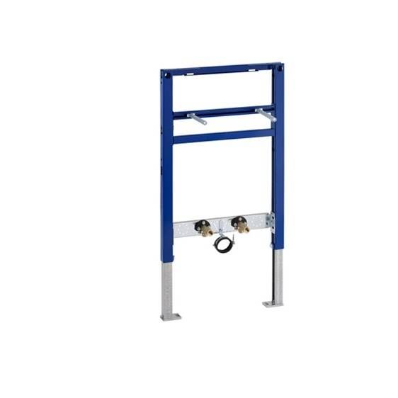 FACTORY CODE: 111432; Fixing bracket for suspended washbasin with floor-mounted tap fittings, partial height 112 cm. Adjustable fixing from 5 to 38 cm - Galvanized ground supports with reference notches - Self-supporting - Width of the frame profile cm. 4