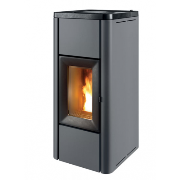 This is an air stove, the most classic pellet stove model. A single, powerful yet quiet fan optimally distributes warm air throughout the room where the stove is installed, making it warm and comfortable in just a few minutes. Depending on the home's insulation and layout, this stove can heat even very large rooms. You can choose the fan power according to your needs. A warm, powerful blast to heat faster, or a barely audible whisper if you simply need to maintain the temperature.