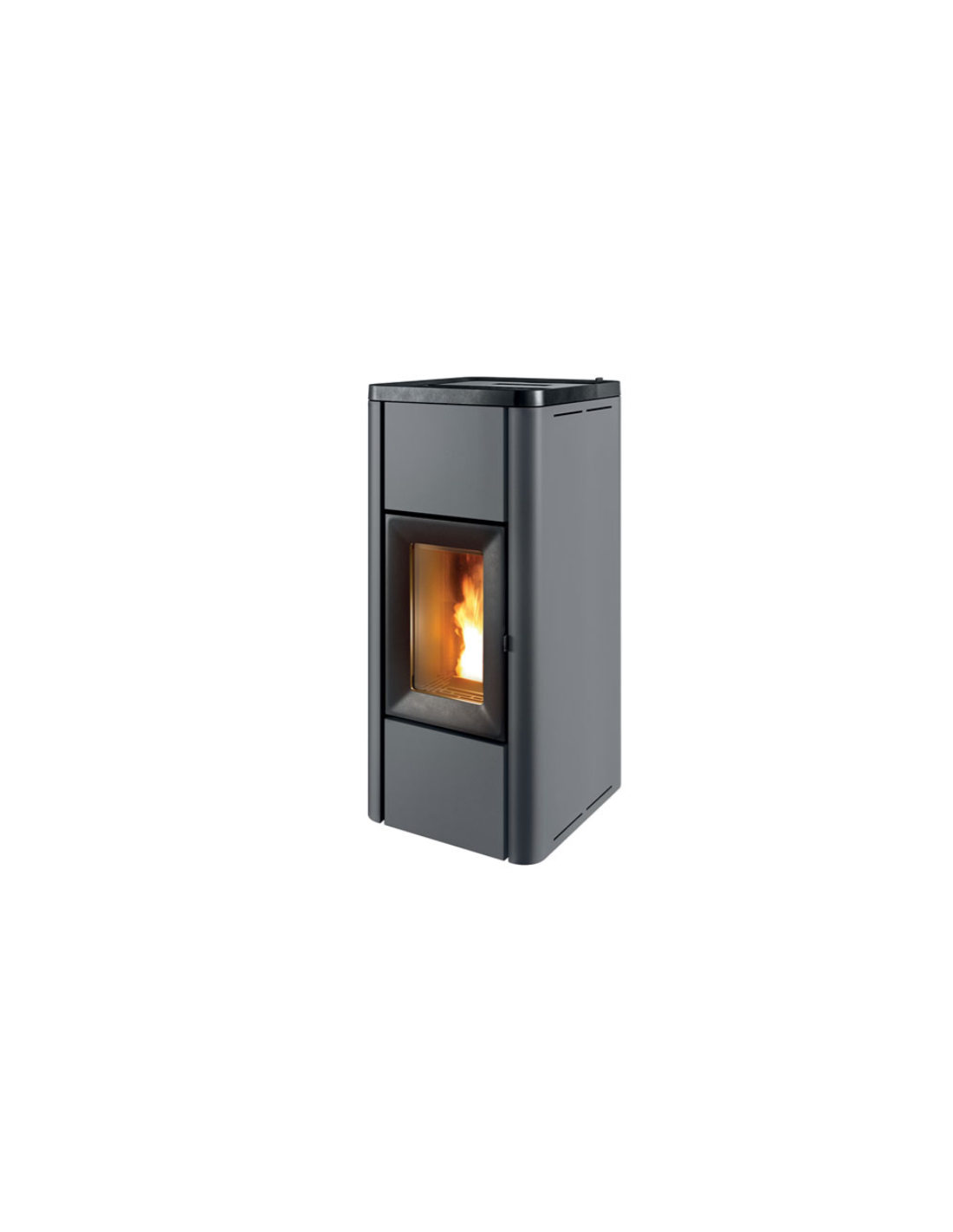 This is an air stove, the most classic pellet stove model. A single, powerful yet quiet fan optimally distributes warm air throughout the room where the stove is installed, making it warm and comfortable in just a few minutes. Depending on the home's insulation and layout, this stove can heat even very large rooms. You can choose the fan power according to your needs. A warm, powerful blast to heat faster, or a barely audible whisper if you simply need to maintain the temperature.