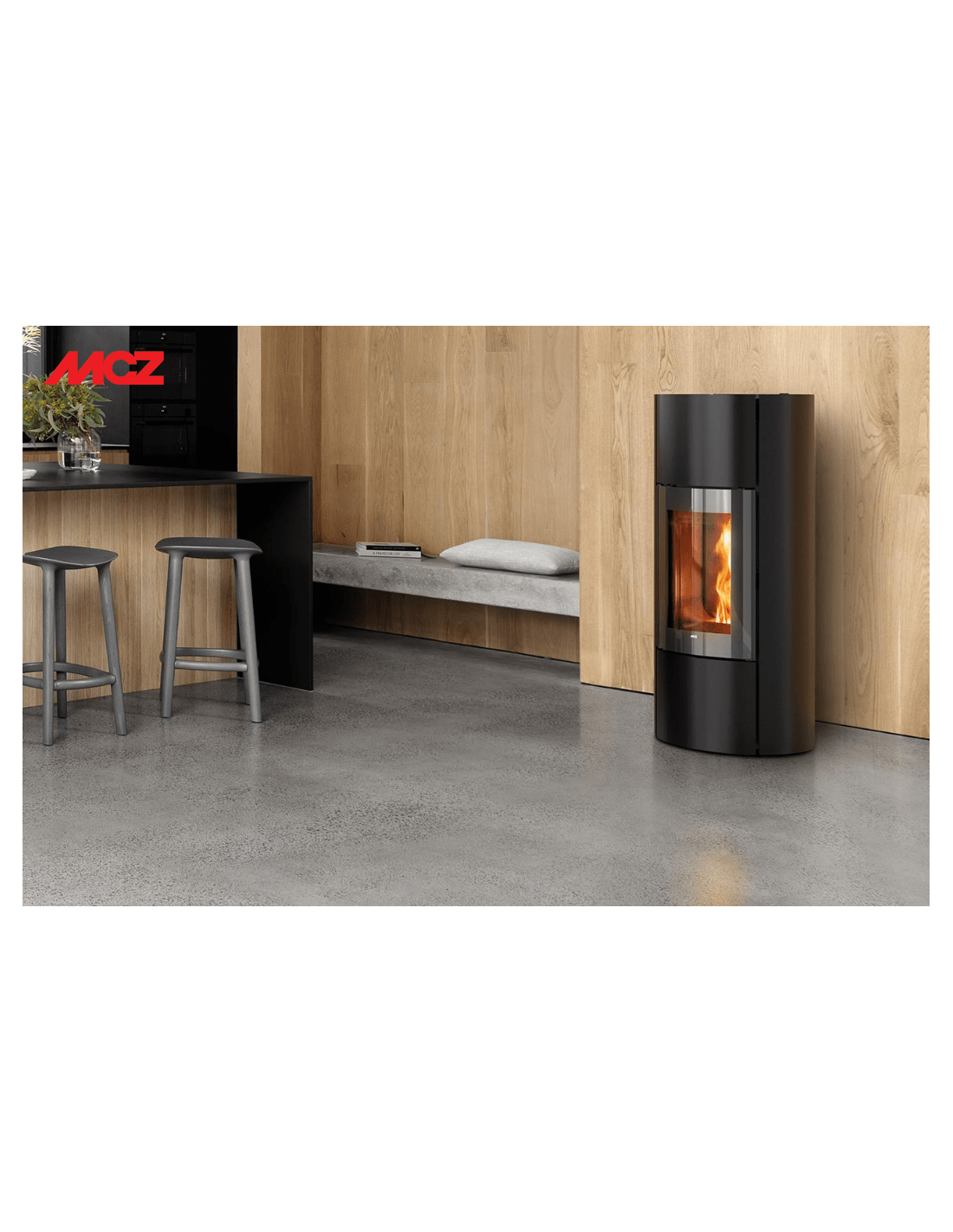This is a ducted stove that allows you to heat multiple rooms simultaneously. The hot air produced by the stove is transported to other rooms in the house through wall pipes. With the Comfort Air® system, patented by MCZ, the air can reach up to 8 meters and guarantees an outlet temperature of up to 80°C. To complete the Comfort Air kit, MCZ offers particularly elegant and minimalist diffusers, designed for those who appreciate attention to detail, even in heat diffusion. Unlike traditional systems in which the vents must be positioned high up, MCZ diffusers can be installed freely, wherever is most convenient for you, even near the floor.