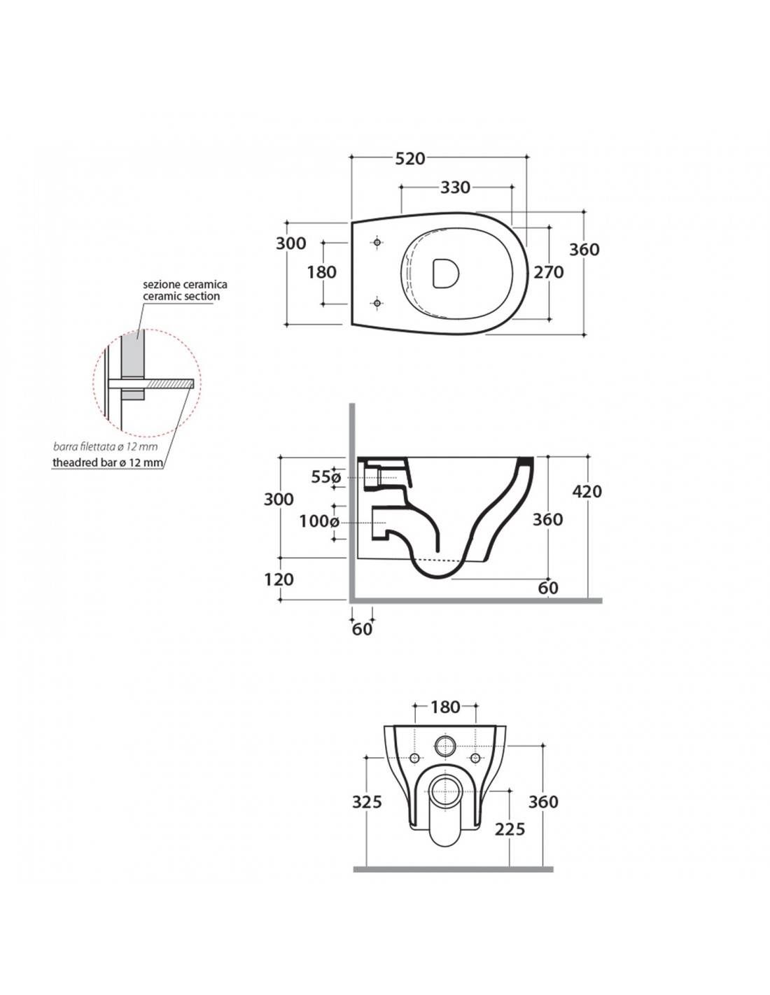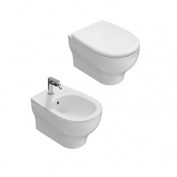 Are you struggling to choose the sanitary ware for your bathroom? If the answer is yes, we have an ad hoc solution that will save you time, effort and money! We recommend choosing the set of suspended sanitary ware without a rim, by Ceramica Globo, Grace model (code GRS_SBST). The commercial offer includes: n° 1 toilet 52x36 without a rim in white ceramic (code GRS03BI); n° 1 bidet 52x36 cm in white ceramic (code GRS10BI); n° 1 white thermosetting seat with traditional closure and quick release system (GN022.BI). Read below for further details. Grace, like the grace and elegance that pervades every element of this collection. The softness of the lines and a contemporary design that brings to mind natural shapes is enhanced in all the items that compose it, including these we are talking about. There are several new features presented in the Grace line: from the new rimless wall-hung toilet and its bidet with hidden fixings to the new removable toilet seat with a double thin profile (suitable for all toilets in the collection). In short, what we are offering you is a truly advantageous solution and, moreover, with an excellent quality-price ratio. If you are interested, make your purchase in complete safety directly from our website ceramicstore.eu and, in a few working days, delivery will take place, via specialized couriers. Ceramic Store guarantees deliveries throughout Italy, including the islands, thus overcoming any geographical distance. For further details, consult the technical sheet below.