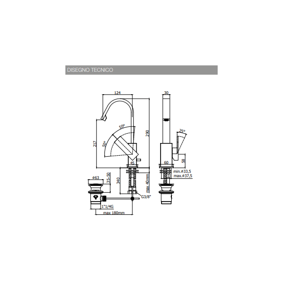 Miscelatore lavabo con canna orientabile ELLE-EFFE EL878CR Paffoni
