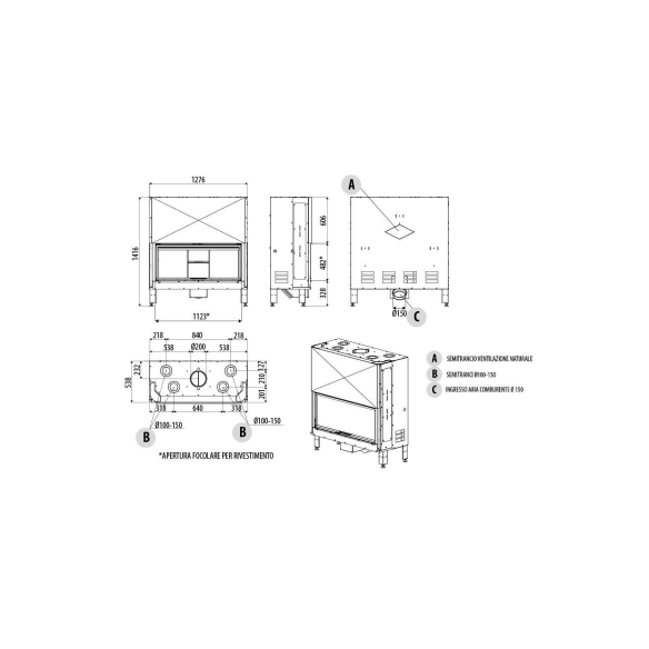 Front wood-burning fireplace with innovative features, high performance, easy to use.