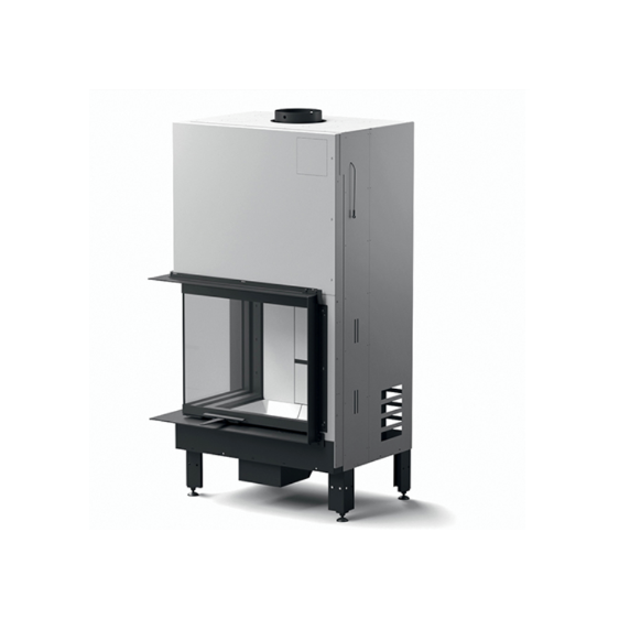 Corner wood-burning fireplace with innovative features, high performance, easy to use.
