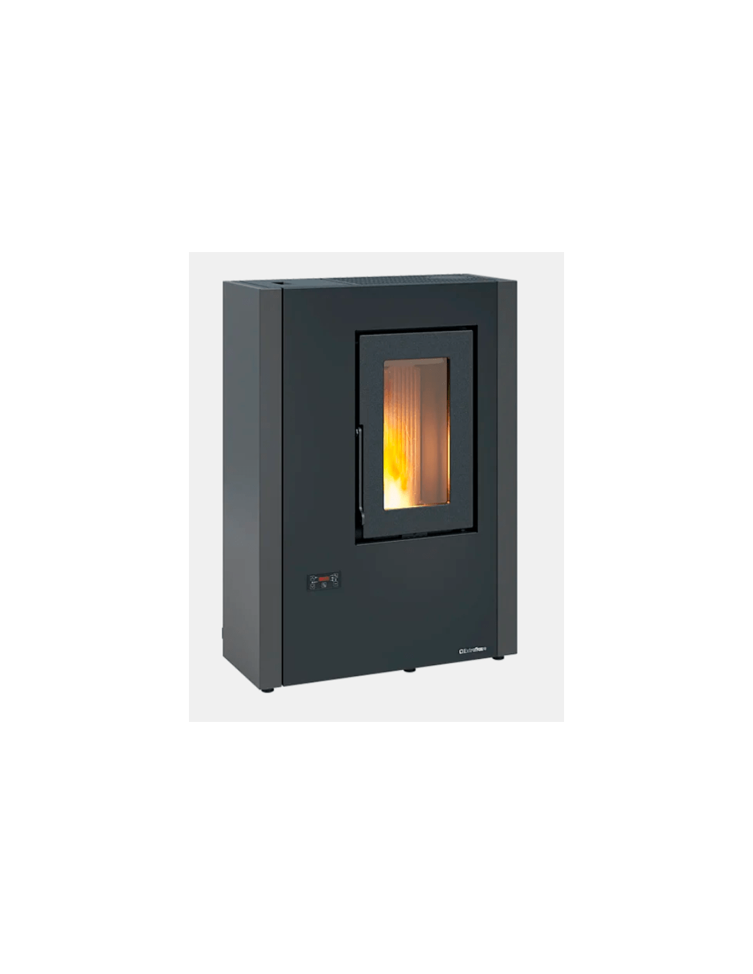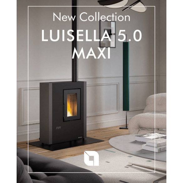 LUISELLA 5.0 Estufa de pellets ventilada delgada Con una profundidad inferior a 30 cm, Luisella es la estufa de pellets ideal incluso para los espacios más pequeños de su hogar, como entradas o pasillos. Su versatilidad se complementa con la opción de salida de humos superior o trasera, para una instalación a la medida de sus necesidades.