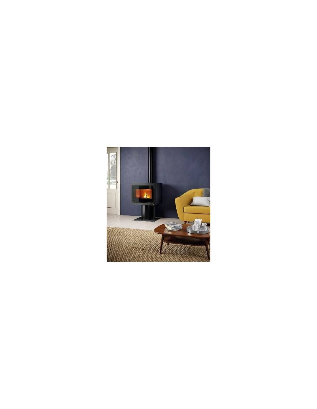 La nueva estufa hermética con un diseño que amuebla, con una gran puerta de cristal panorámica para facilitar la visión del fuego. Chimenea enteramente de hierro fundido, potencia de 9 kW para satisfacer espacios más grandes y salida de humos superior.