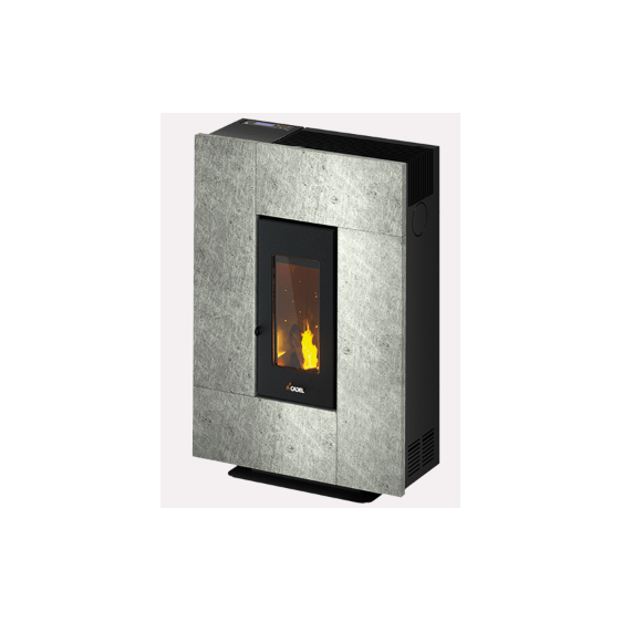 La estufa de pellets que amuebla. Su diseño elegante y contemporáneo lo hace especialmente adecuado para espacios pequeños, gracias a una profundidad de sólo 27,5 cm. También está disponible un práctico kit para montaje en pared.