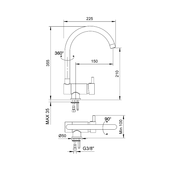 Miscelatore monocomando per lavello sotto finestra TAURON SOTTOFINESTRA