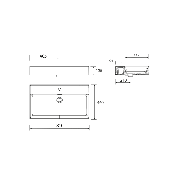 Lavabo VENETO 810 una vasca PORCELLANA BIANCA 810 x 120 x 460 mm