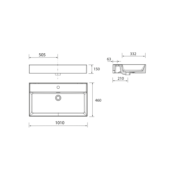 Lavabo VENETO 1010 una vasca PORCELLANA BIANCA 1010 x 120 x 460 mm