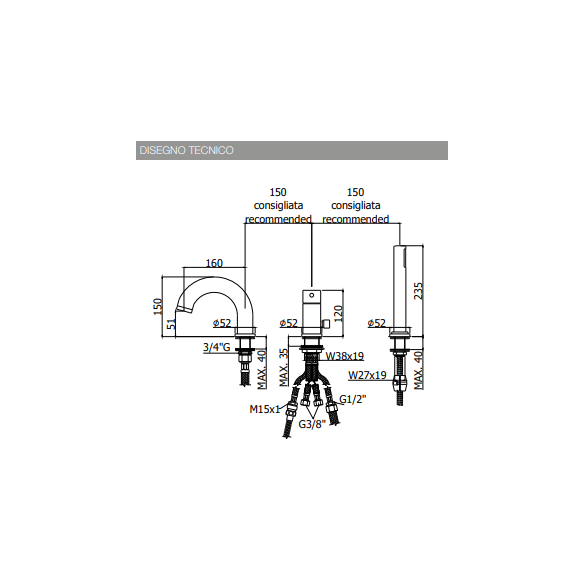 Miscelatore bordo vasca con deviatore LIGHT LIG041LCR Paffoni