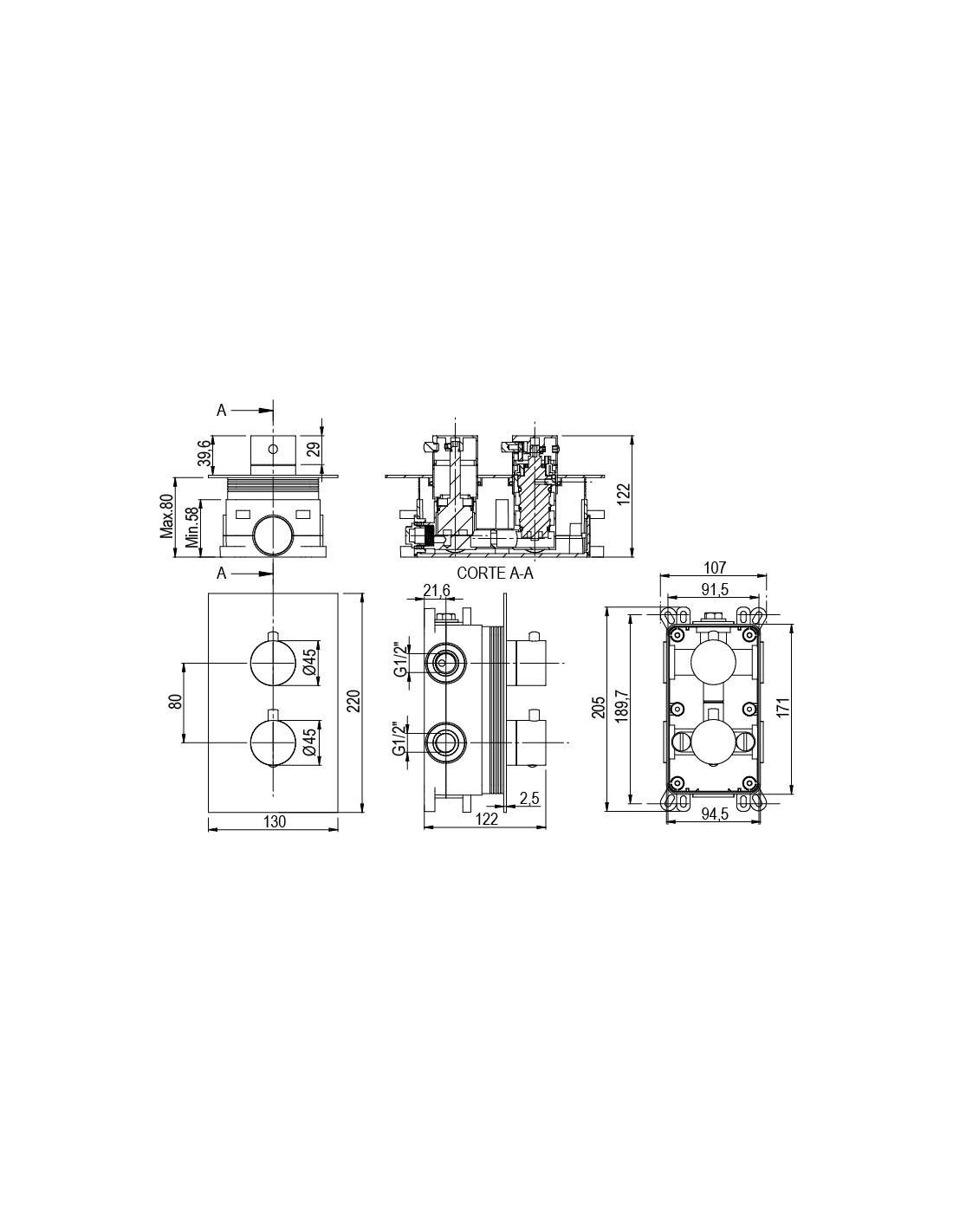 • Mitigeur thermostatique intégré Alpha 2 voies, finition or brossé