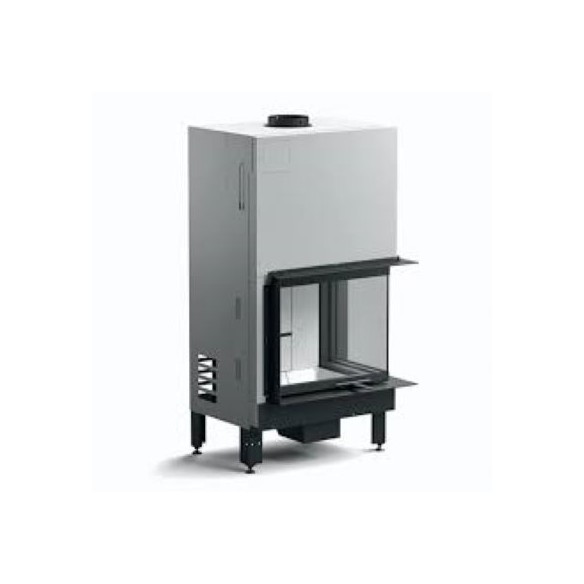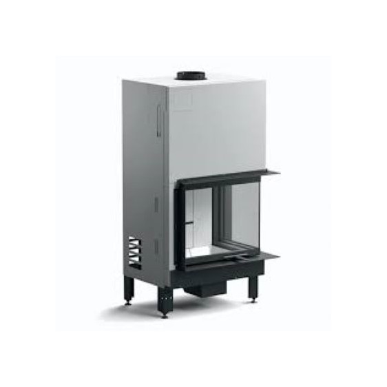 Cheminée d'angle à bois aux caractéristiques innovantes, performante et facile à utiliser.