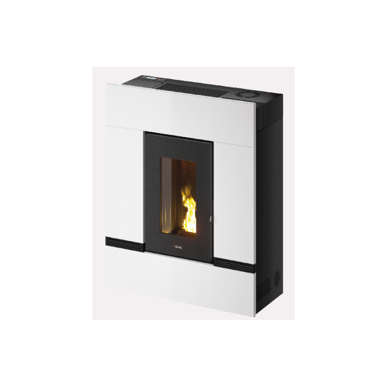 Haute puissance gainable avec sortie de fumée arrière et nouveau revêtement en pierre Serpentine. Caractérisé par un design minimaliste et 2 grilles de ventilation situées dans la partie inférieure de la façade, pour une meilleure répartition de l'air. Également disponible en version 12kW.