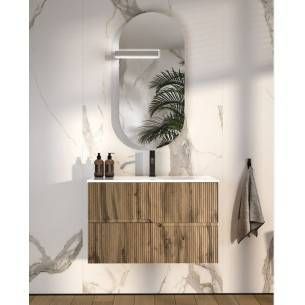 Mobili da Bagno Sospesi completi di Specchio con luci al LED, Lavabo ed Accessori.