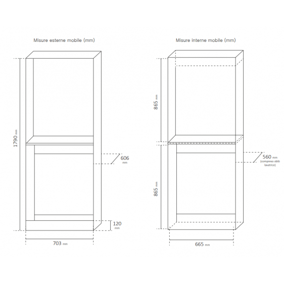 (Per un corretto uso è bene posizionare la lavatrice nel ripiano inferiore ed asciugatrice al ripiano superiore).