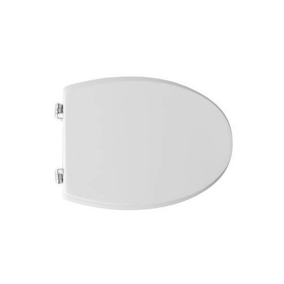 Sedile (Forma tipo 1 - cerniere tipo C) dedicato a casa ceramica Ideal Standard serie Tonda. Dimensioni: Lunghezza cm 41,7-46,8; Larghezza cm 33,6; Interasse cerniere cm 13,3-21; Cerniere regolabili ad espansione. Sedile in legno stabilizzato, colato in poliestere. Cerniere in ottone cromato e viti di fissaggio in acciaio inox.