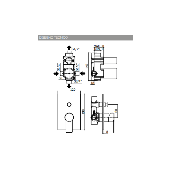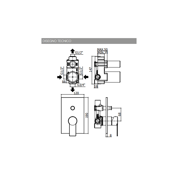 attacchi calda/fredda e superiore 1/2”G - attacco inferiore 3/4”G
