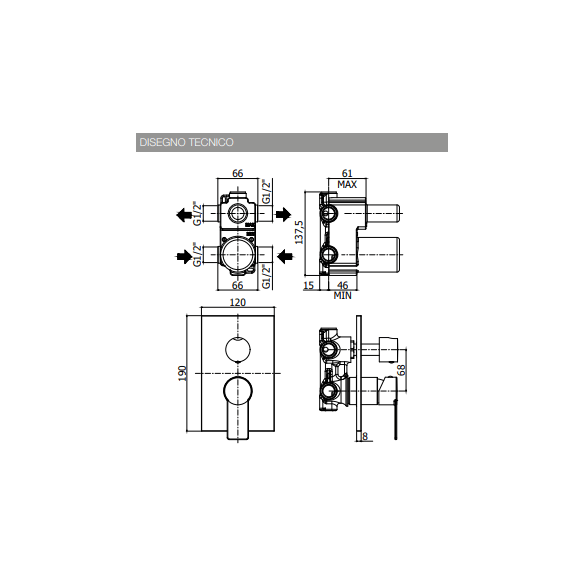 Miscelatore incasso doccia (2 uscite) completo di: