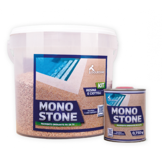 Monostone è un kit composto da resina poliuretanica igro-indurente alifatica e ciottoli di marmo con una granulometria variabile da 1 a 4 mm. Utilizzato per realizzare rivestimenti, esterni continui di tipo permeabile e drenante.