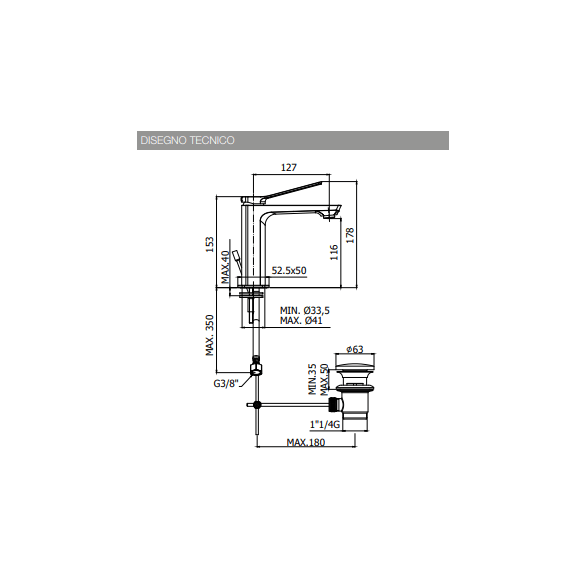Miscelatore lavabo completo di: