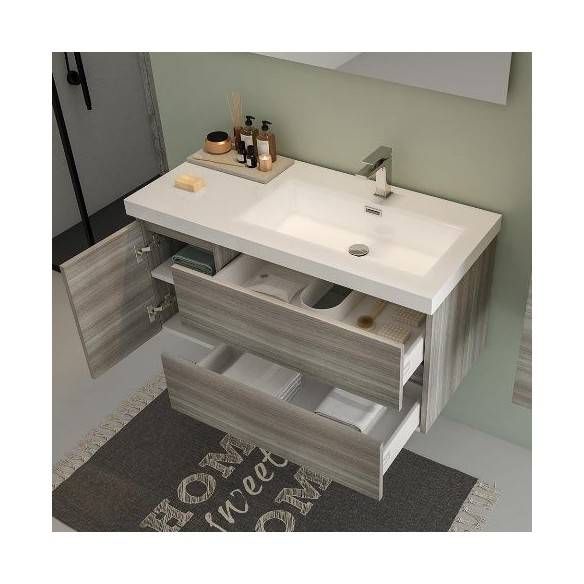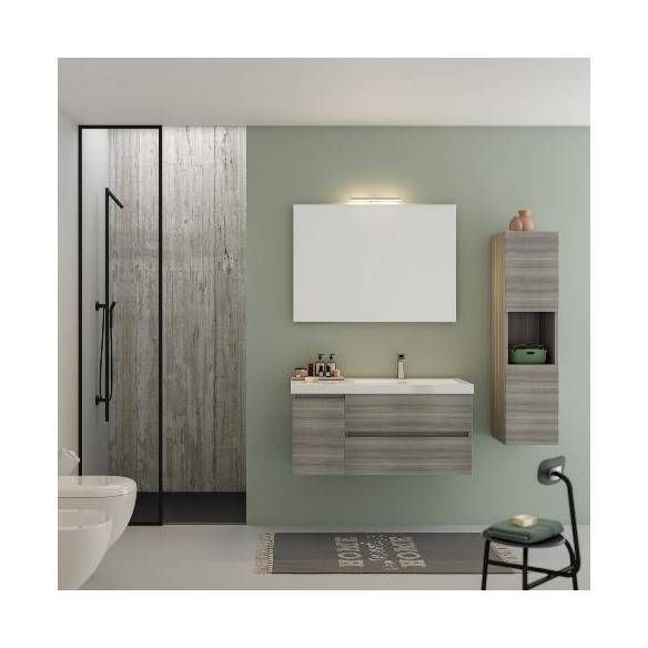 Base portalavabo sospesa (L 100 x P 46 x H 45 cm) in finitura Eucalipto grigio o Bianco Larix o Olmo Terra