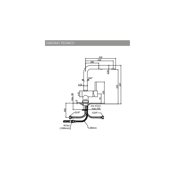 Miscelatore lavello monoforo con canna orientabile completo di: