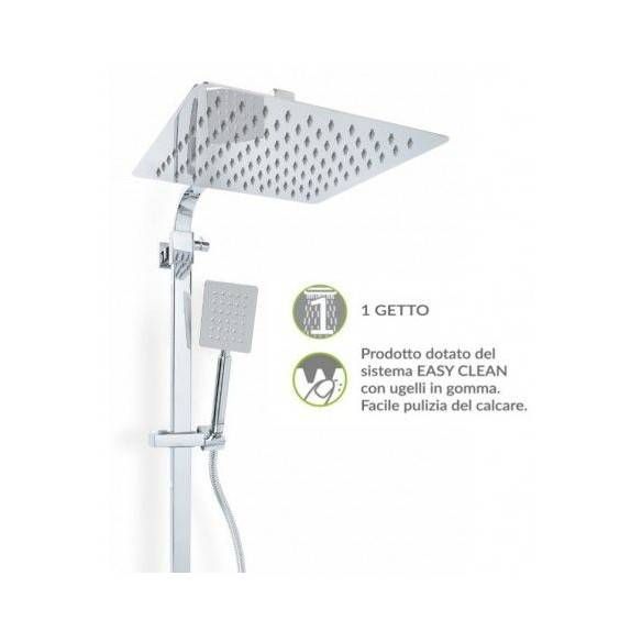 Colonna doccia quadra 25x25 con deviatore ZEUS METAFORM acciaio inox con soffione e doccetta quadro