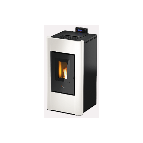 Stufa a pellet idro dal design semplice e curato, caratterizzata da un impianto idraulico che sfrutta a pieno il calore generato distribuendolo in tutti gli spazi di una piccola abitazione.