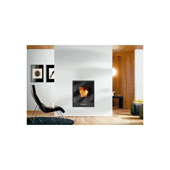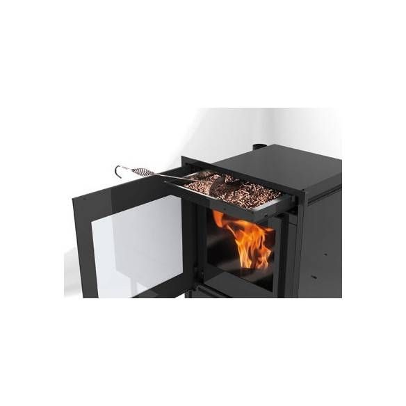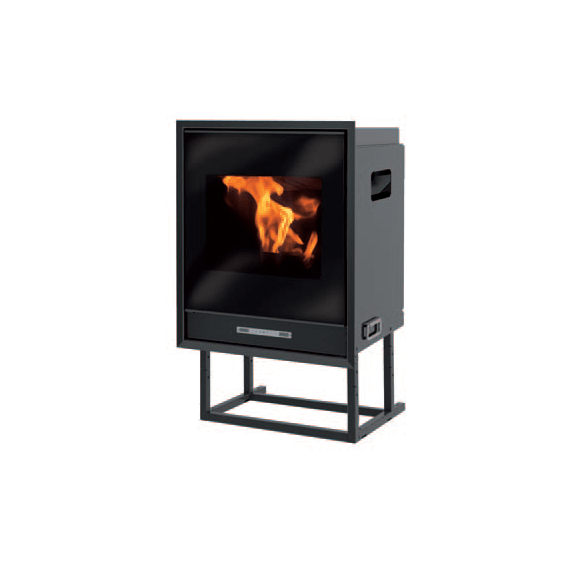 Caminetto a pellet di dimensioni contenute, in grado di riscaldare l’acqua per alimentare l’impianto di riscaldamento (termosifoni, scalda salviette, pannelli radianti a pavimento..).