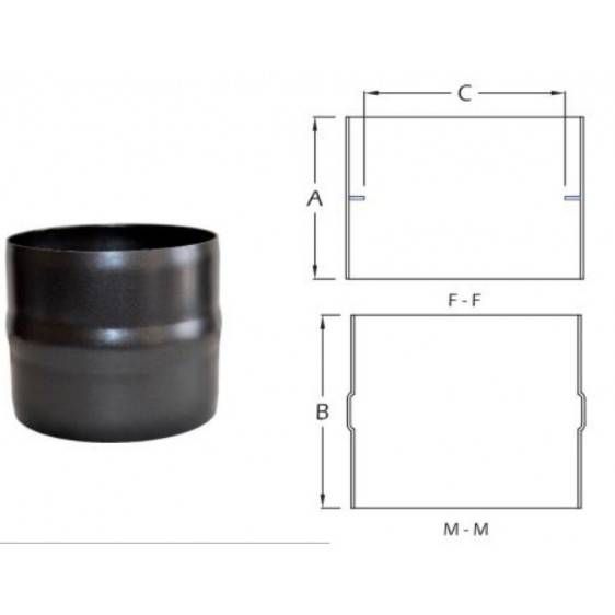 Il pezzo femmina lungo 105mm, è fornito di gocciolatoio anticondensa saldato al centro dell'elemento con funzione di trattenere la condensa all'interno.